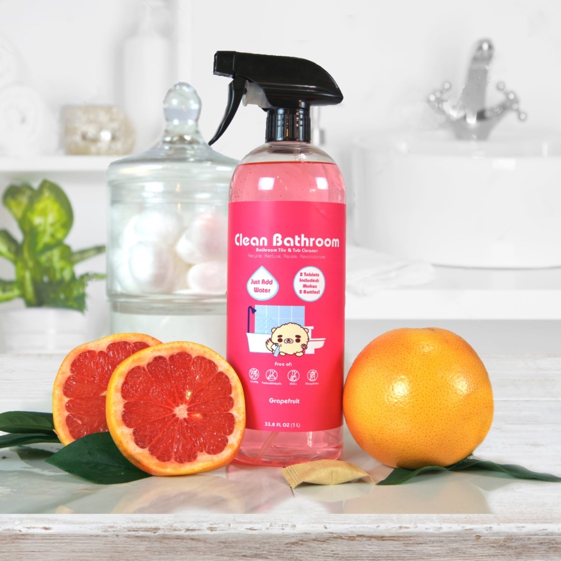 With our effervescent bathroom cleaner tablets, you get grime-cleaning power for less than half the cost of competing brands. Each bottle comes pre-filled with enough tablets to make 2 full bottles of cleaner. Our tablets use a "Soft Scent" formula, with only a soft citrus scent and no harsh chemical odor.